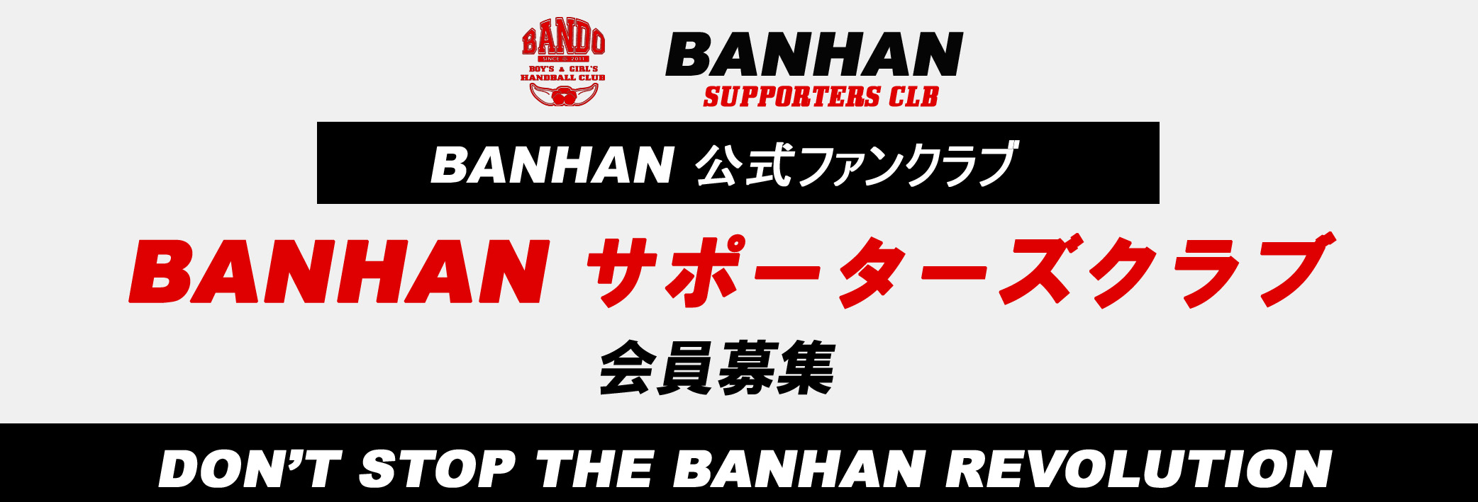BANHAN(坂東市内に拠点を置くハンドボールクラブ)ファンのためのBANHANファンクラブ。BANHAN全試合の無料観戦や試合中オフィシャルとして試合に参加、BANHANオリジナルTシャツ、トレーナーの購入など、BANHANをより楽しめる特典がいっぱい!